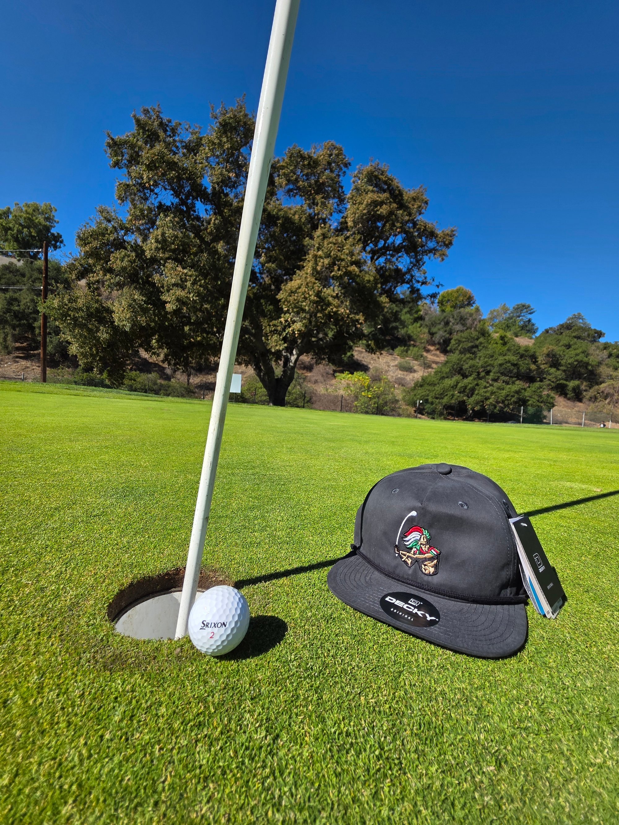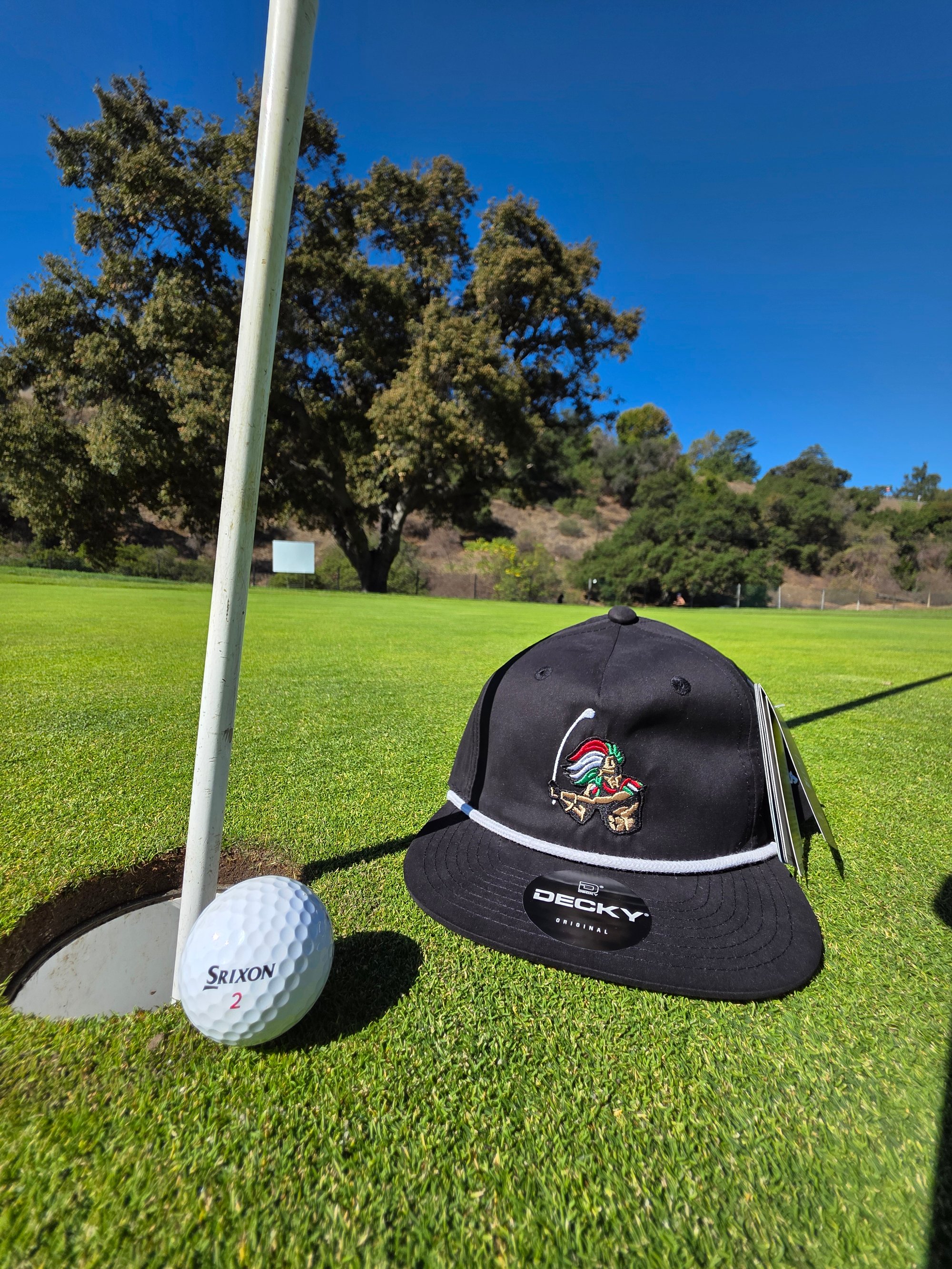 Channel the strength and heritage of the Aztec Warrior with this classic rope golf hat designed for golfers who play with power and pride. The Aztec Warrior Rope Cap combines retro vibes with modern performance: a soft-structured 5-panel crown, flip-up buckram, and a bold rope detail for that timeless look. Crafted from a durable cotton/poly blend, this hat offers UPF 50+ sun protection, water-repellent fabric, and a breathable design with ventilation eyelets. Finished with a flat visor and adjustable plastic snapback for a perfect fit, it’s built for warriors of the fairway.